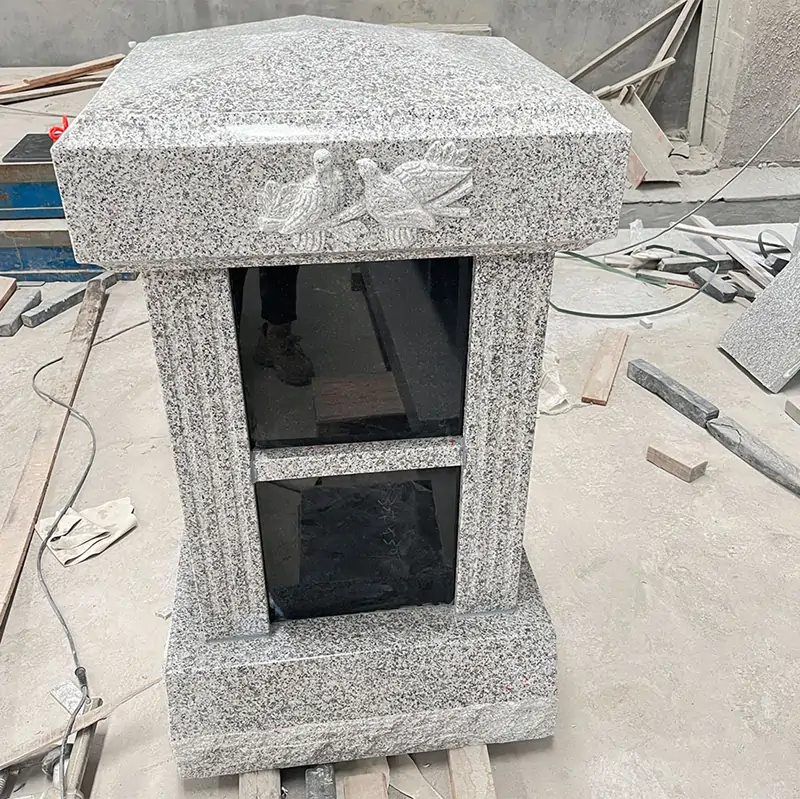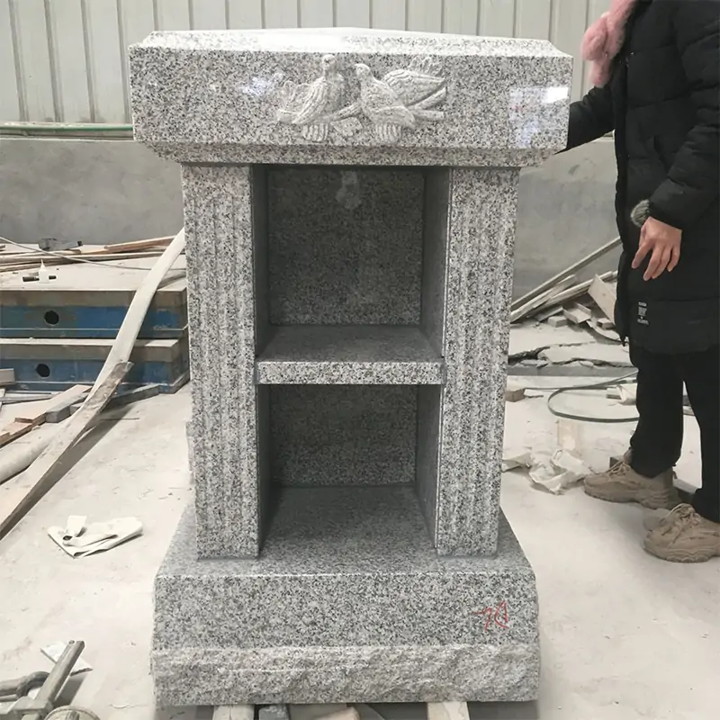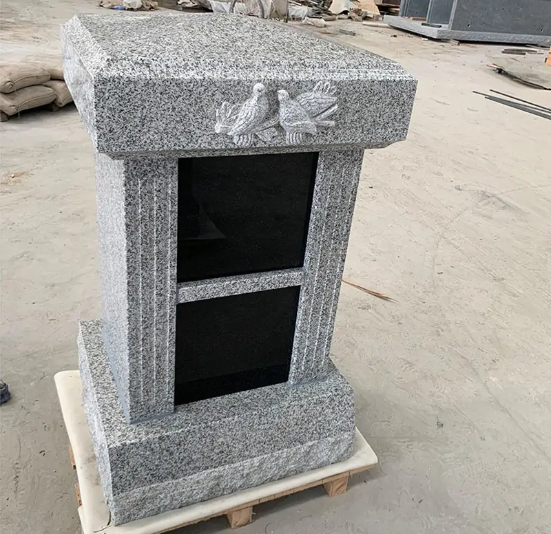 The simple grooved line decorations on the columns and the dove relief carvings on the top add a sense of detail.