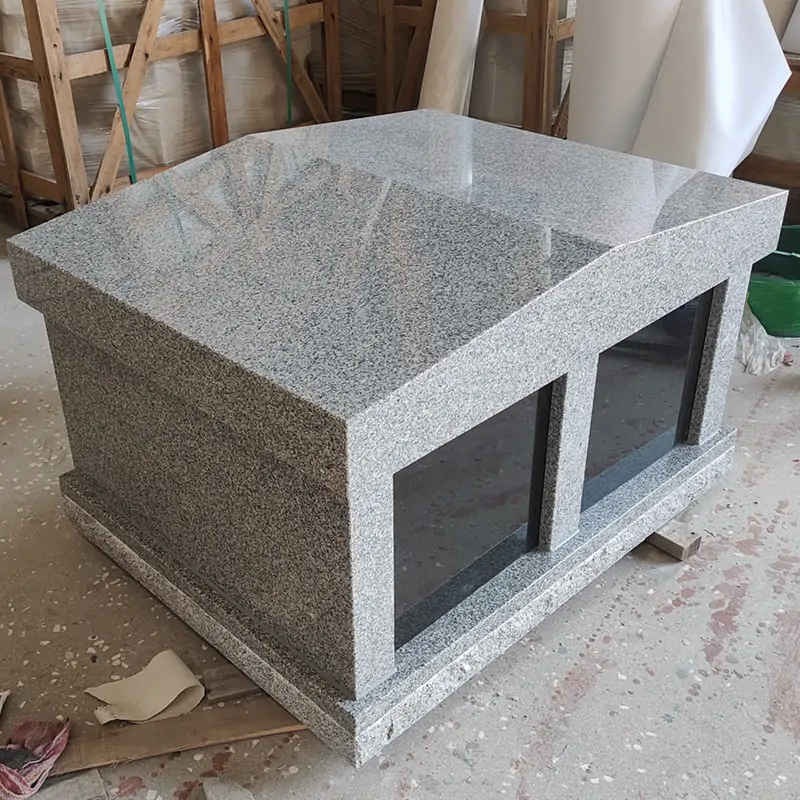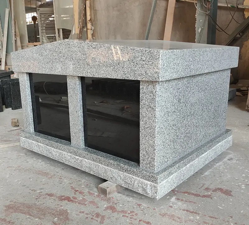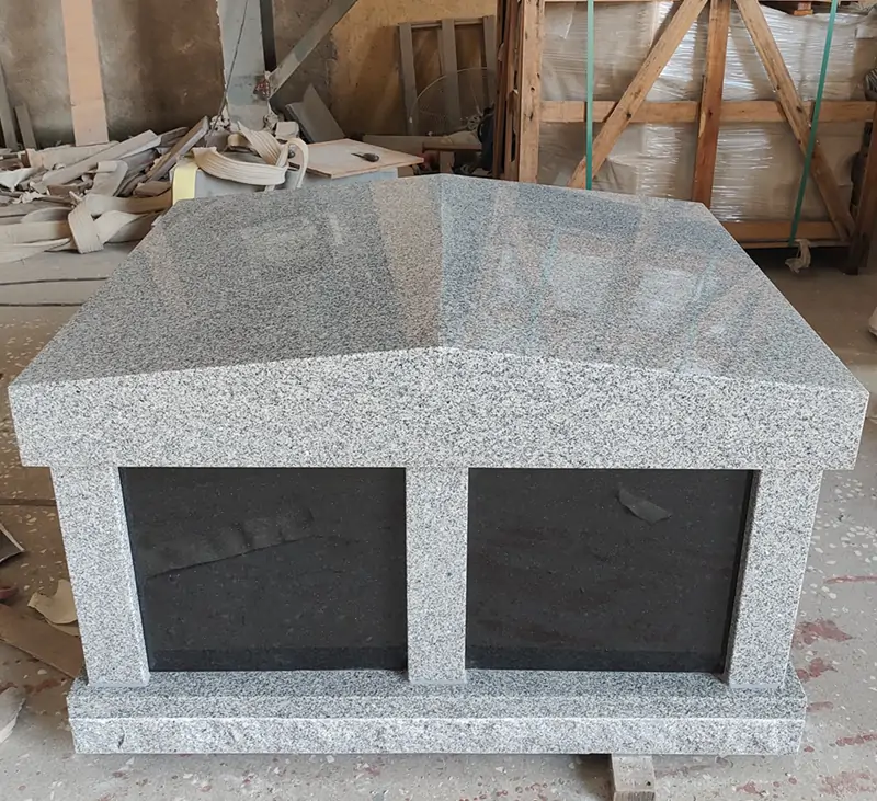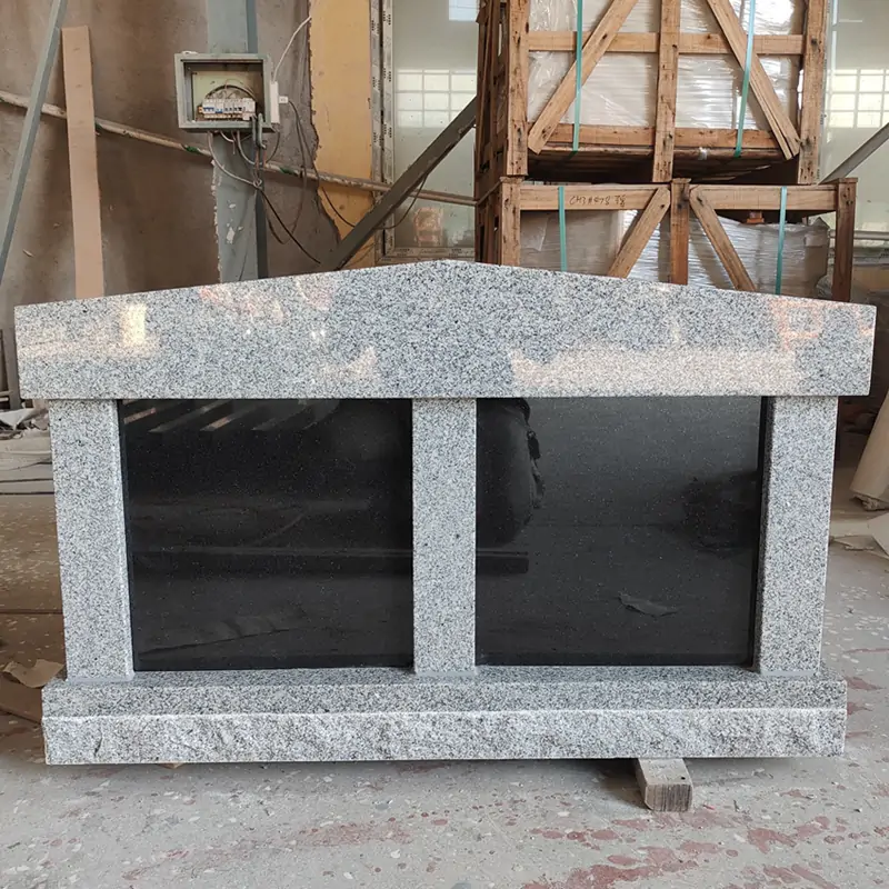 It is a double-row structure with a roof-shaped top. Below are two independent recessed niches for ashes, separated by a pillar in the middle,