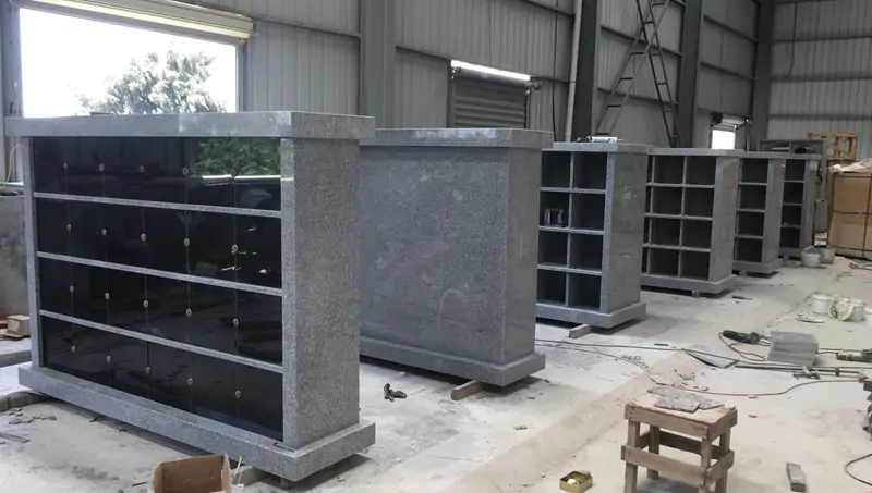 It is a single-sided structure with 24 independent urn niches. The main body is made of dark gray granite.