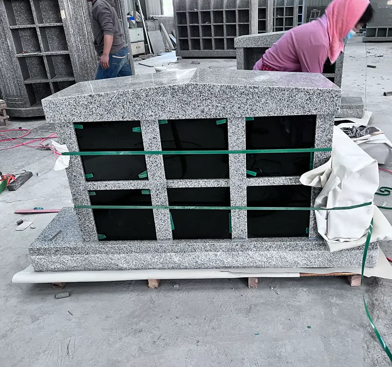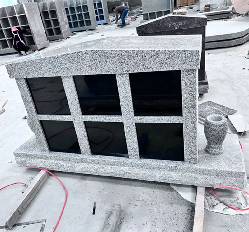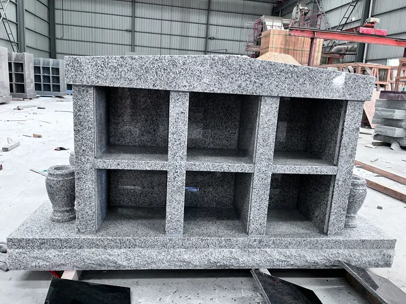 each of which can accommodate an urn. It has a wide and flat base at the bottom, and the overall design is solemn and dignified.