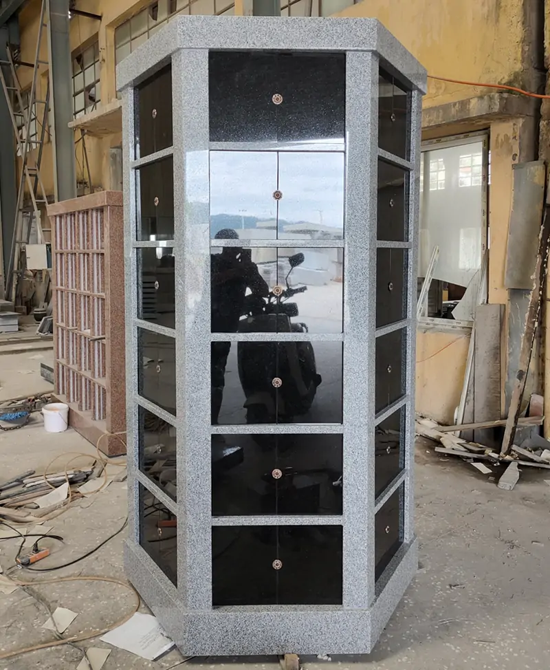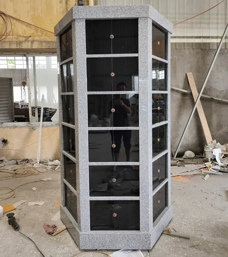 It has a total of 72 independent cremation niches. These niches are evenly distributed on each face of the polygon,