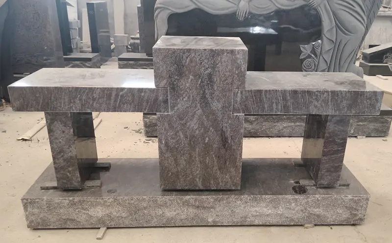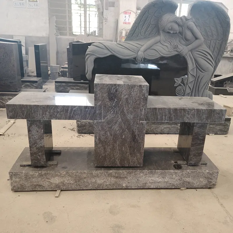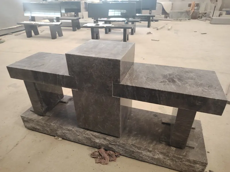 Made of Bahama Blue granite with natural light and dark textures, it adopts a minimalist geometric structure.