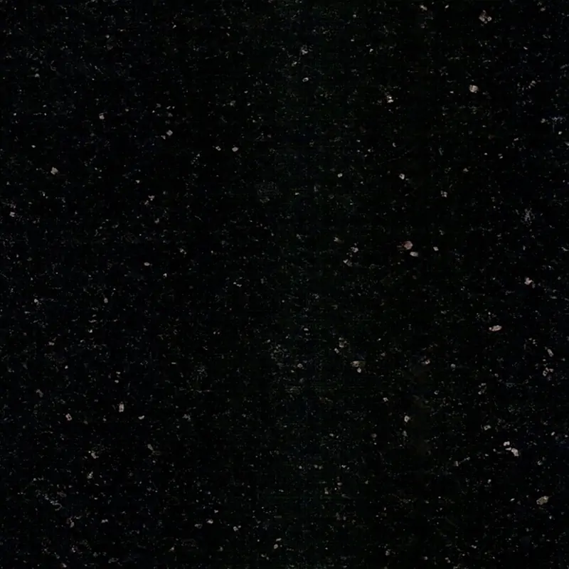 It has a deep, dark black base color, with a uniform distribution of fine golden, silvery or white sparkling crystalline particles on the surface.