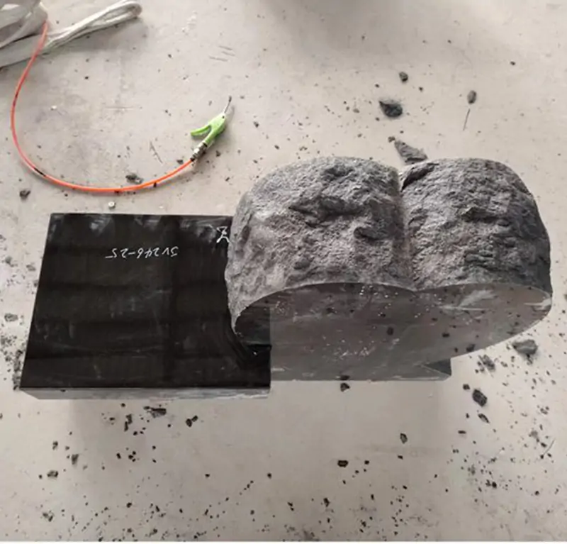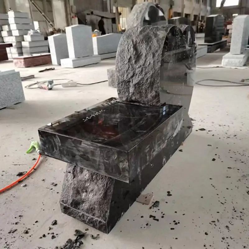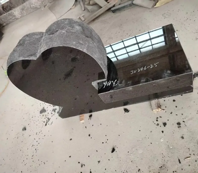 Made of black granite, it has a hard texture and a glossy finish.