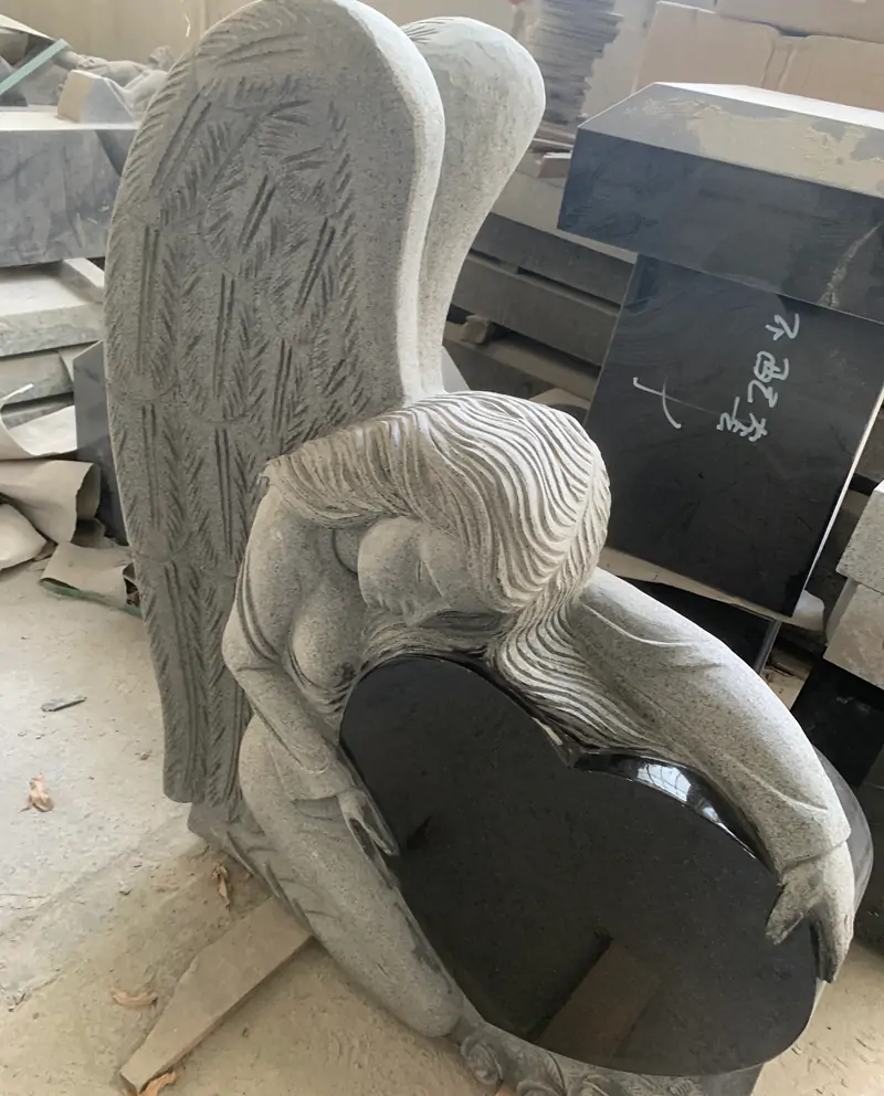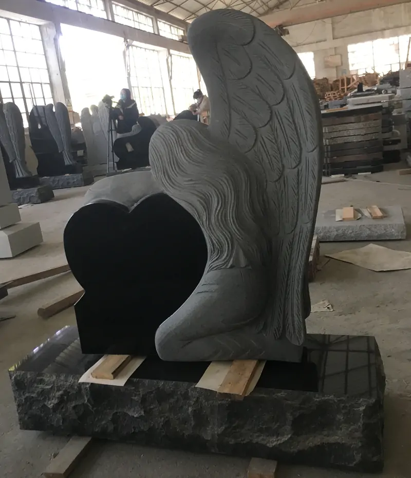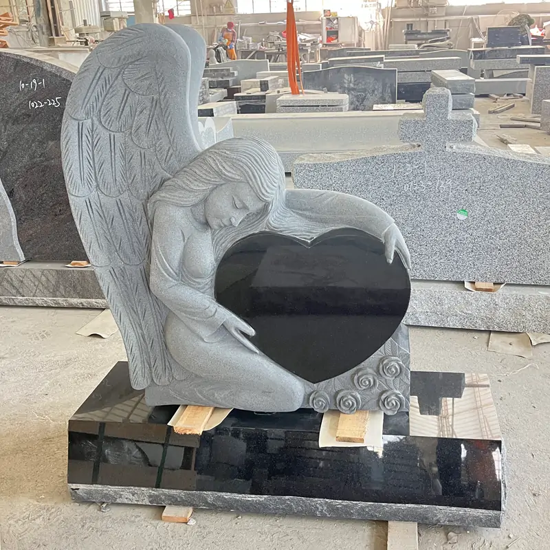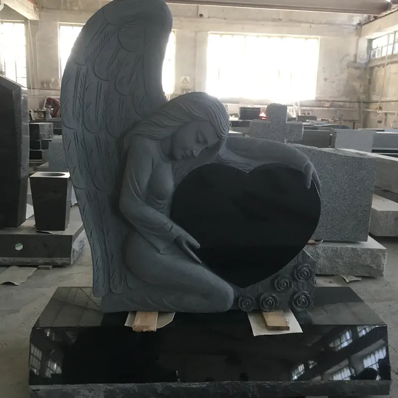 This masterpiece made out of high quality black granite shows an Angel holding a heart.