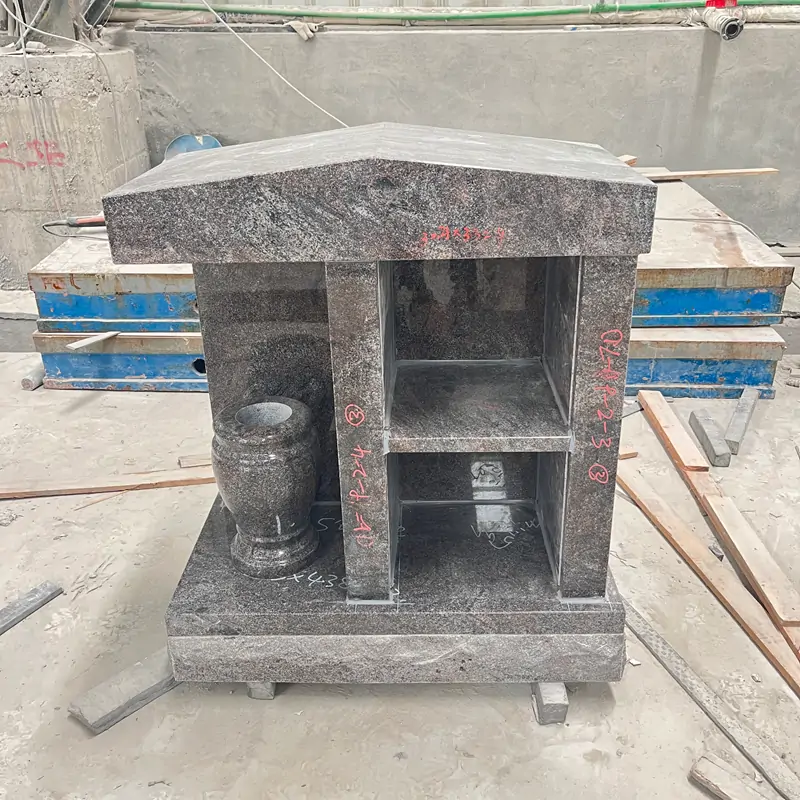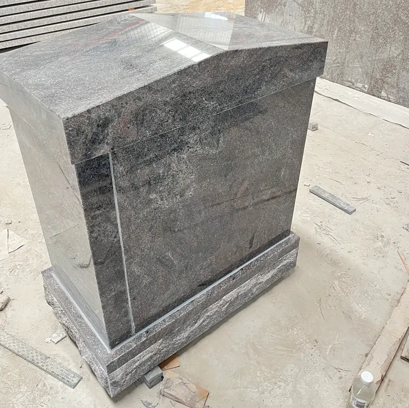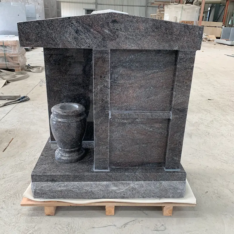 The main body is made of purple granite, with a natural texture of interwoven light and dark purplish-gray tones on the stone surface.