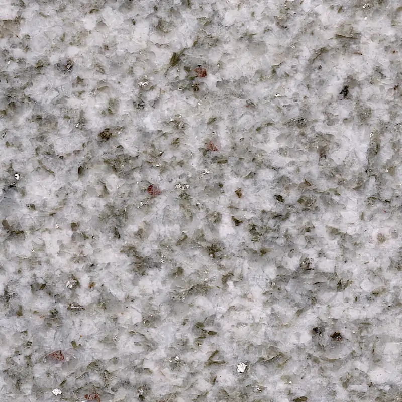 It has a soft light gray-white base tone, with interwoven gray-green and light brown mineral particles in the matrix, and is dotted with fine silvery white crystalline points.