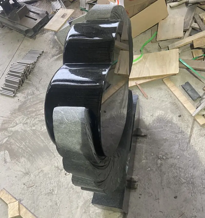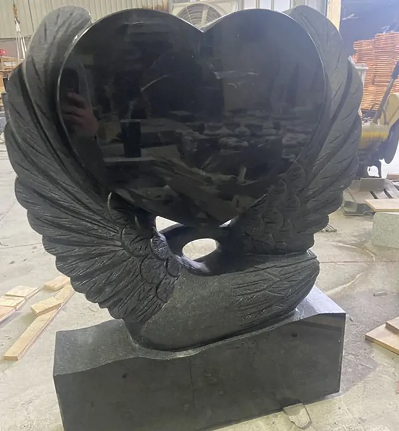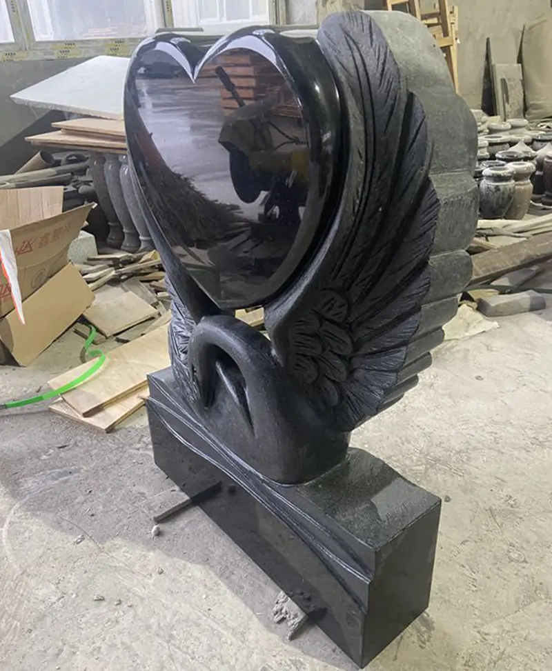 With a swan spreading its wings as the base, the swan’s neck forms a ring, holding up a heart-shaped tombstone.