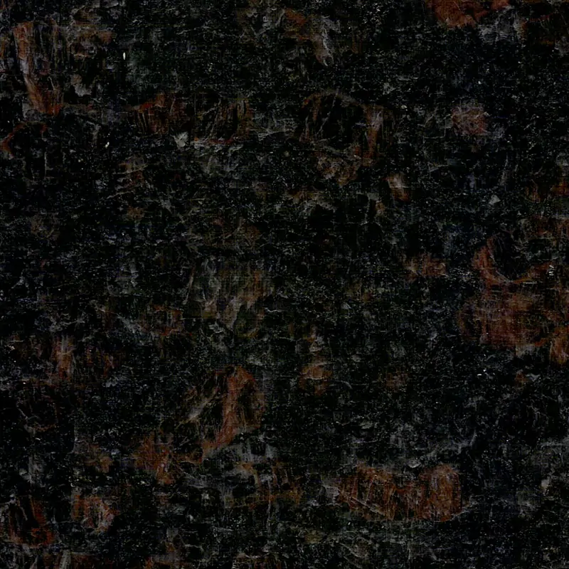 It has a dark black base, interwoven with rich chestnut-brown textures, and locally dotted with light gray fine specks.